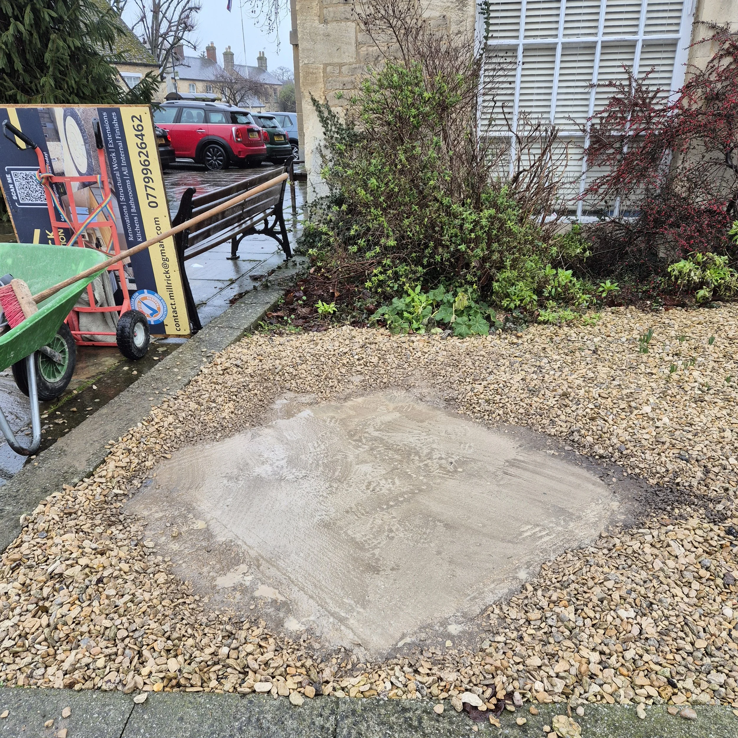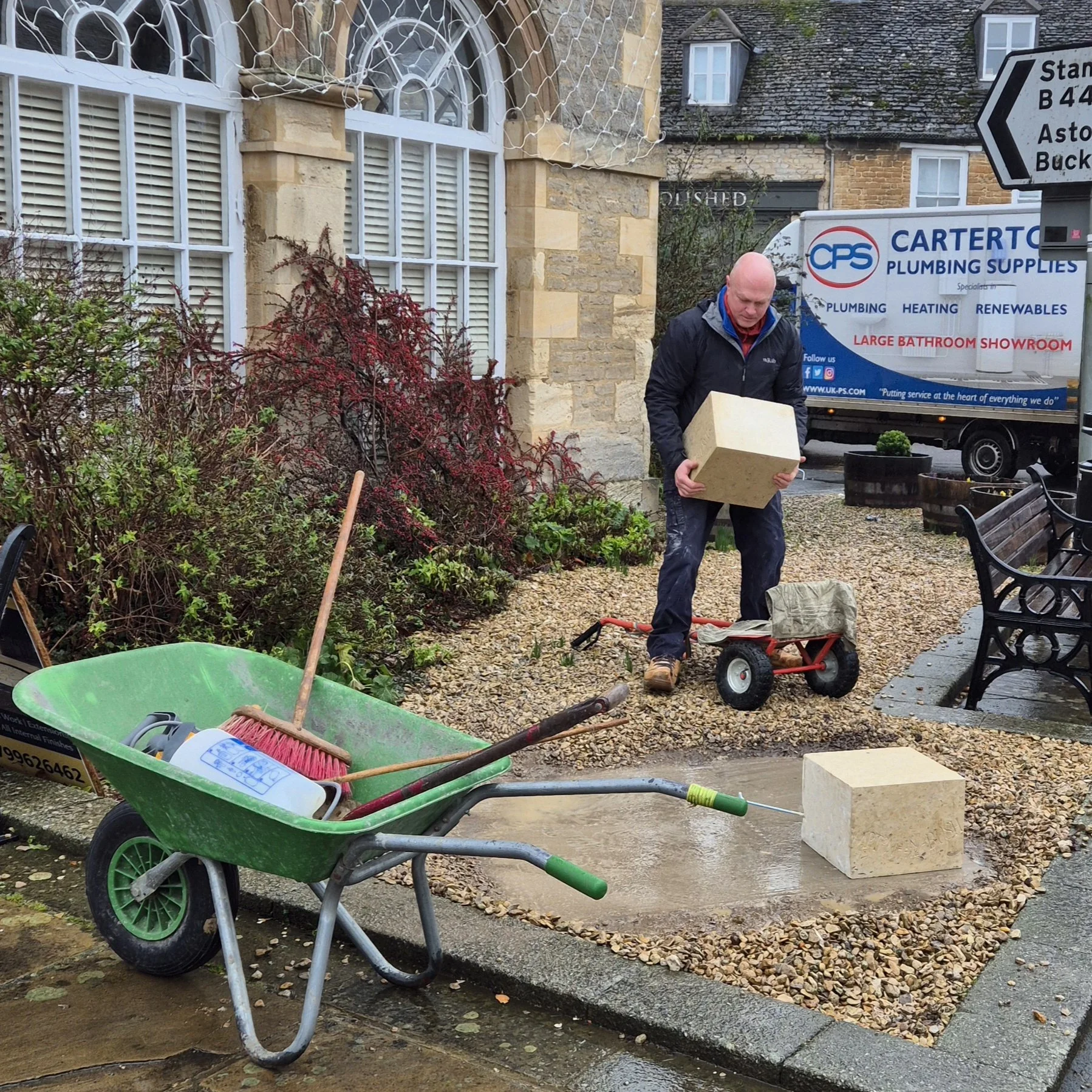 Over three wet, windy days in January 2026, the obelisk was installed in its position on the corner of the Town Hall Garden in Bampton. The site had already been provided with a concrete base, a foot deep and reinforced with steel mesh throughout. Given that the whole structure weighs in excess of 1.5 tonnes, this was a very necessary part of the preparation. Bampton builders Millrick Construction had made this base and would be absolutely central to the third day of installation, the obelisk itself.
