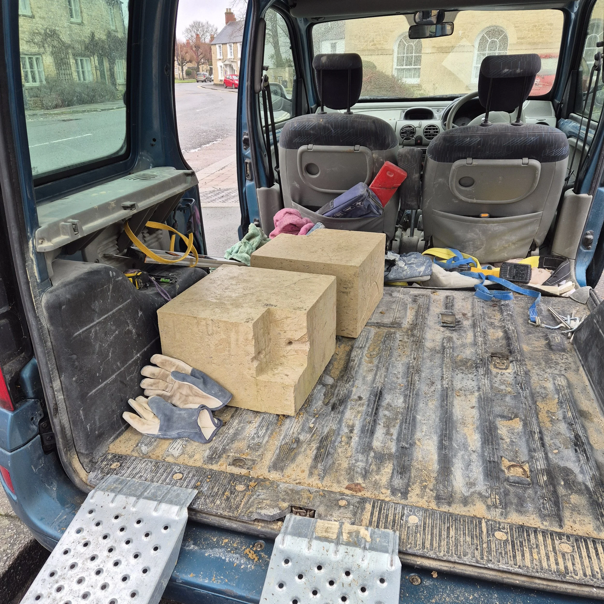 So I came up with a design, submitted it to the Parish Council, and waited. Whilst the PC were quick to give approval in principal to the design, securing approval at higher level to release the Section 106 funds took a little longer. I had to price accurately too - cue discussions with local builders Millrick Construction about a foundation concrete base, installation of the piece and securing it, and with various stone suppliers to decide on the right stone. As I mostly work for exhibition rather than to commission, I don’t usually have to price a piece before I pick up the chisels, so I had to think hard about this, and had to work to a budget.